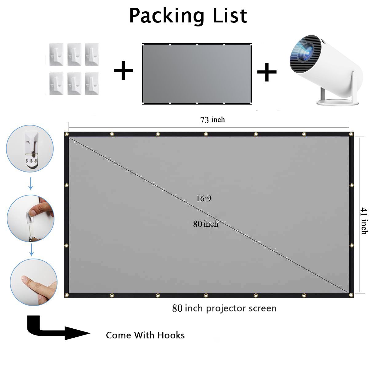 80inch Screen + Projector Set / HDMB & USB Connect / Bluetooth & Wifi Connect
