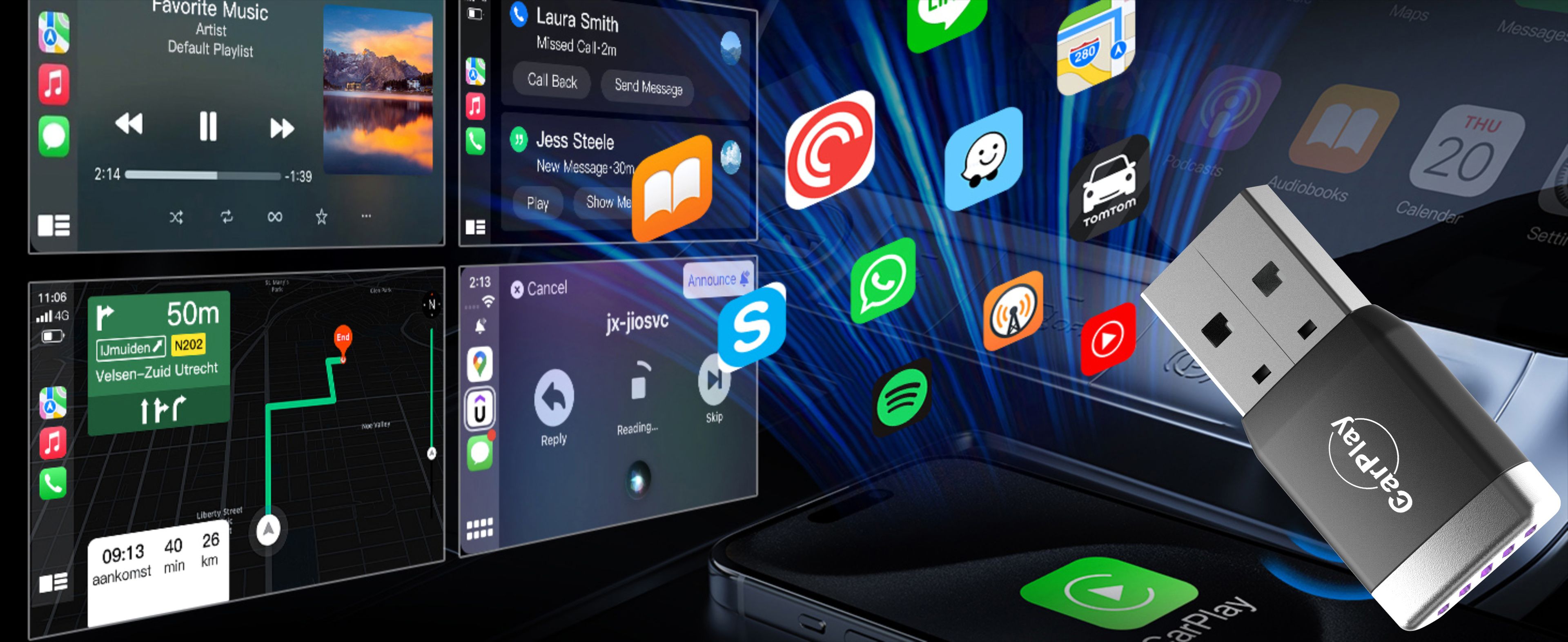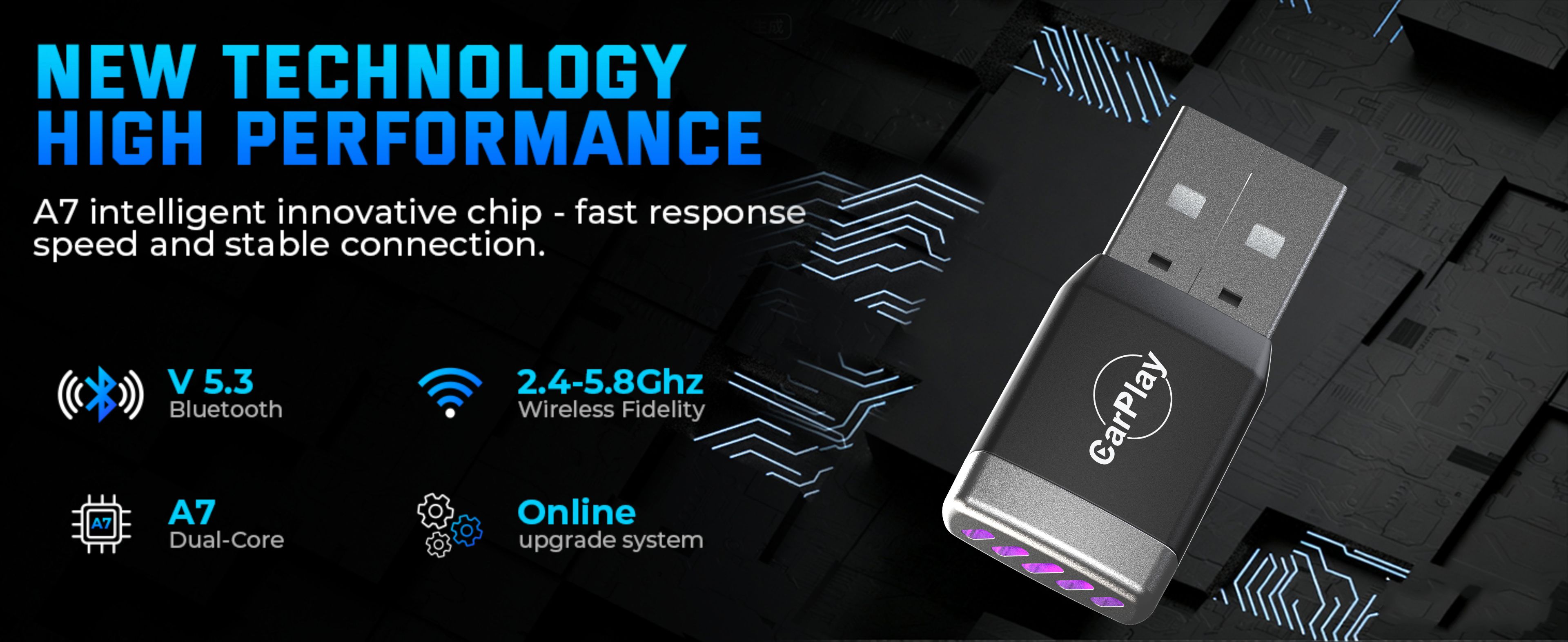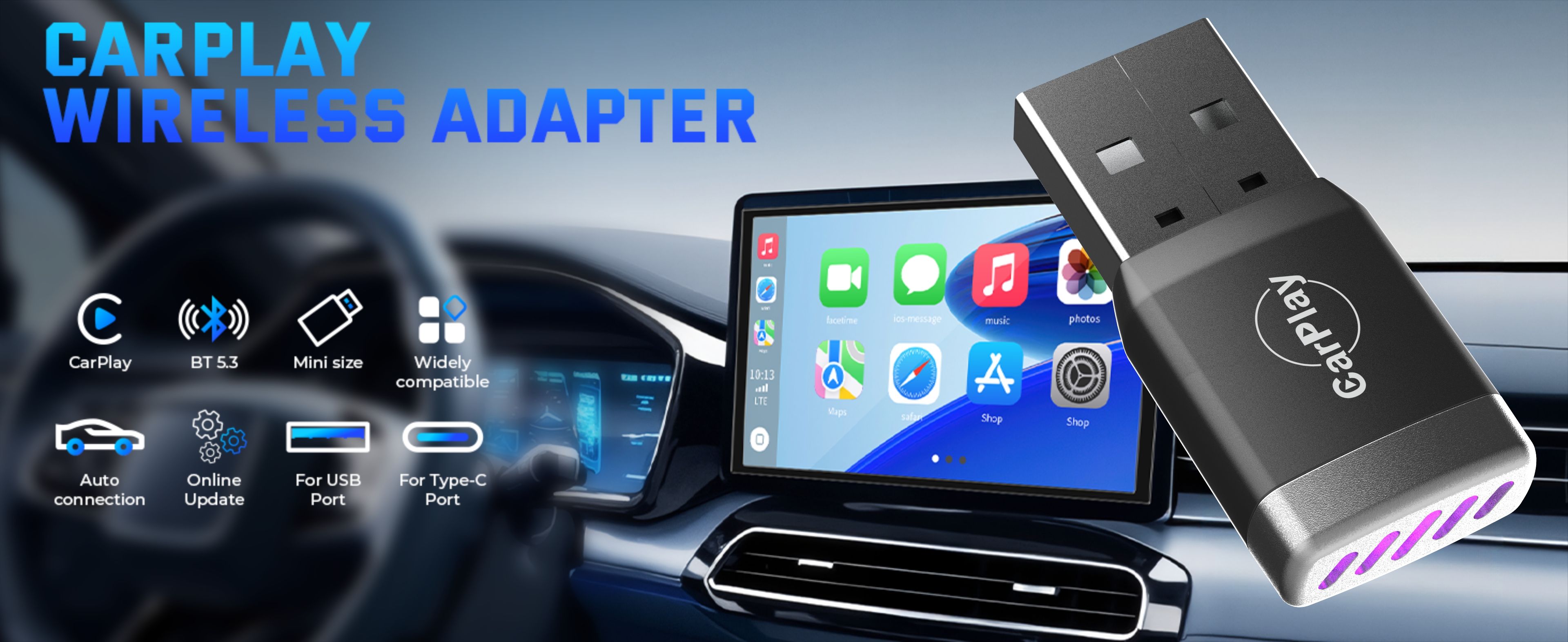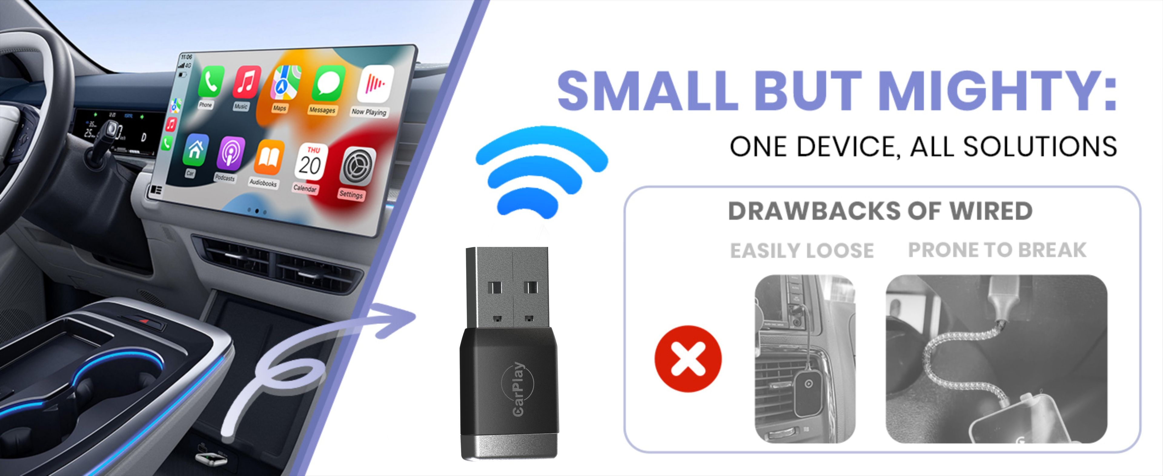 2 in 1 Wireless Carplay Adapter-Compatible with iPhone and Android Devices.