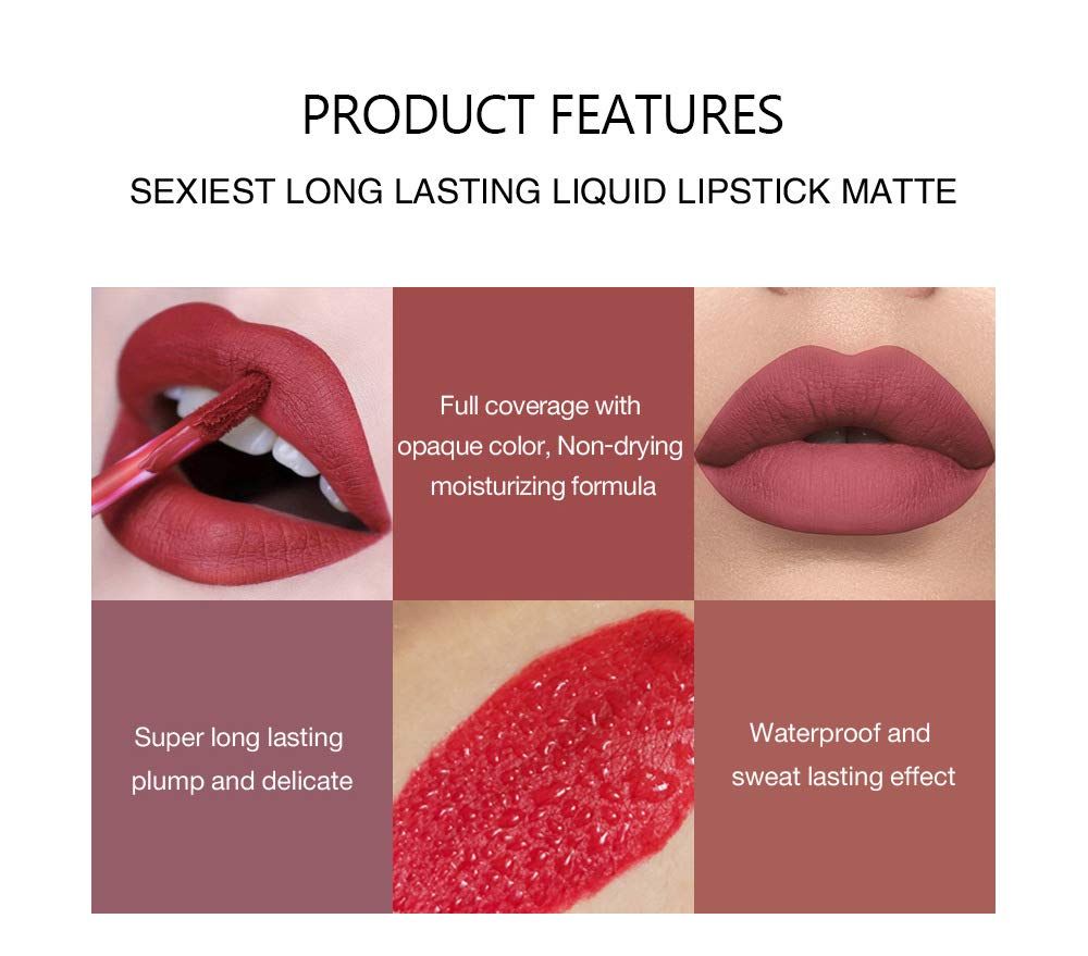 6Pcs Matte Liquid Lipstick Set, Waterproof Long-Lasting Lip Gloss
