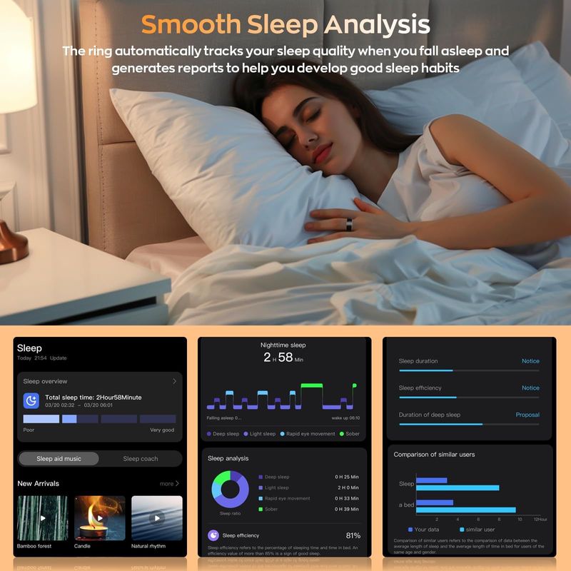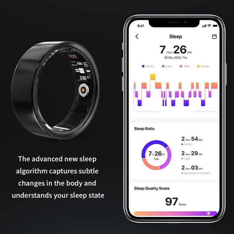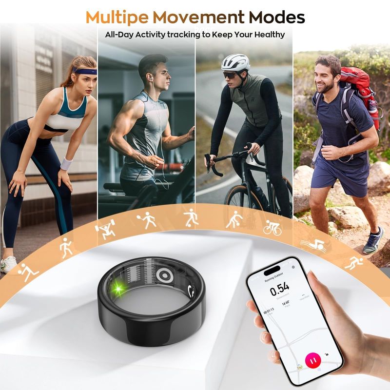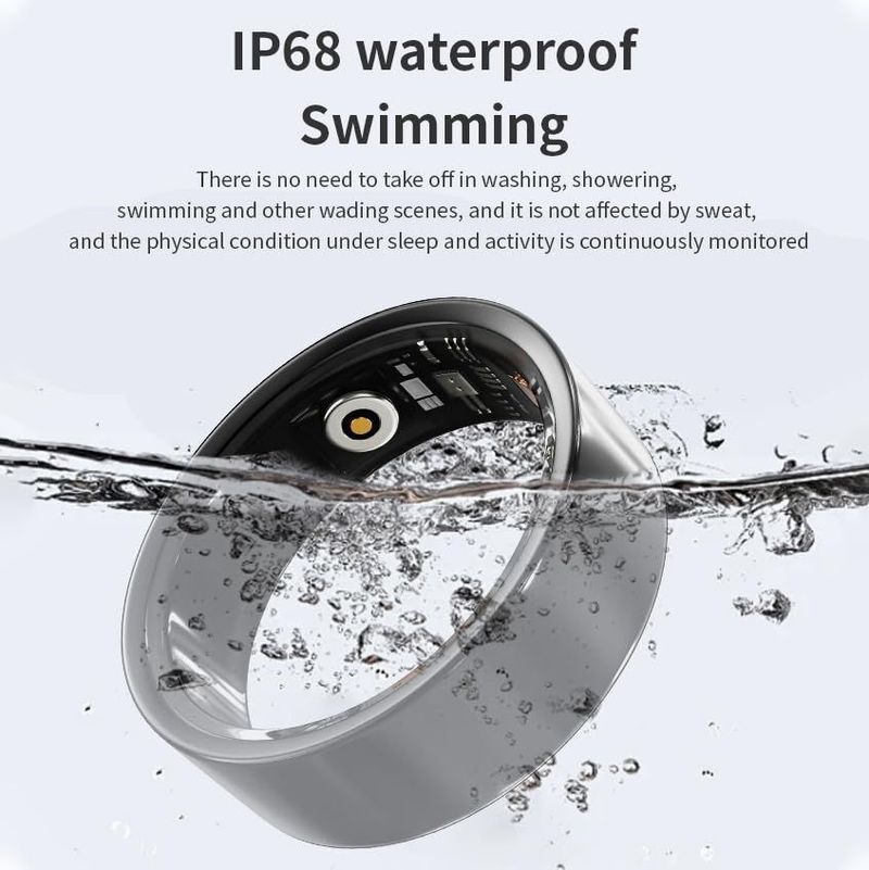 8in Smart Health Ring, IP68 Waterproof Smart Ring with Fitness Tracker, Heart Monitor