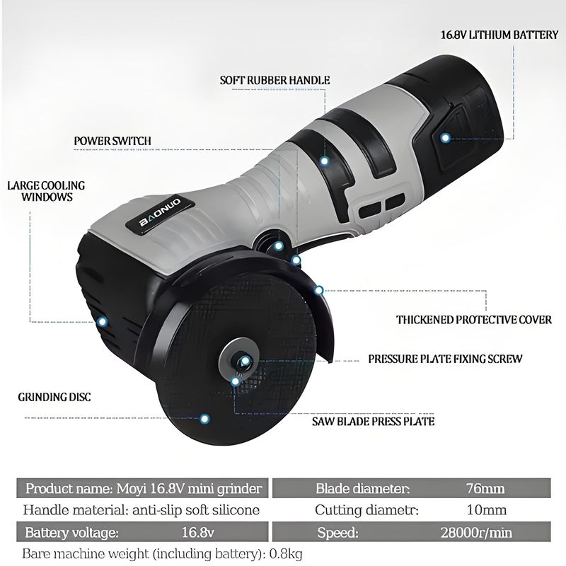 Multifunctional lithium battery mini polisher 16.8V 9000Rpm electric angle grinder