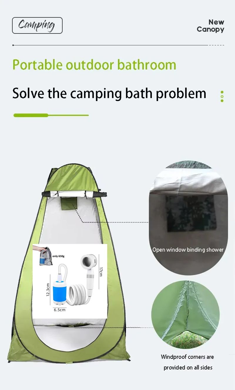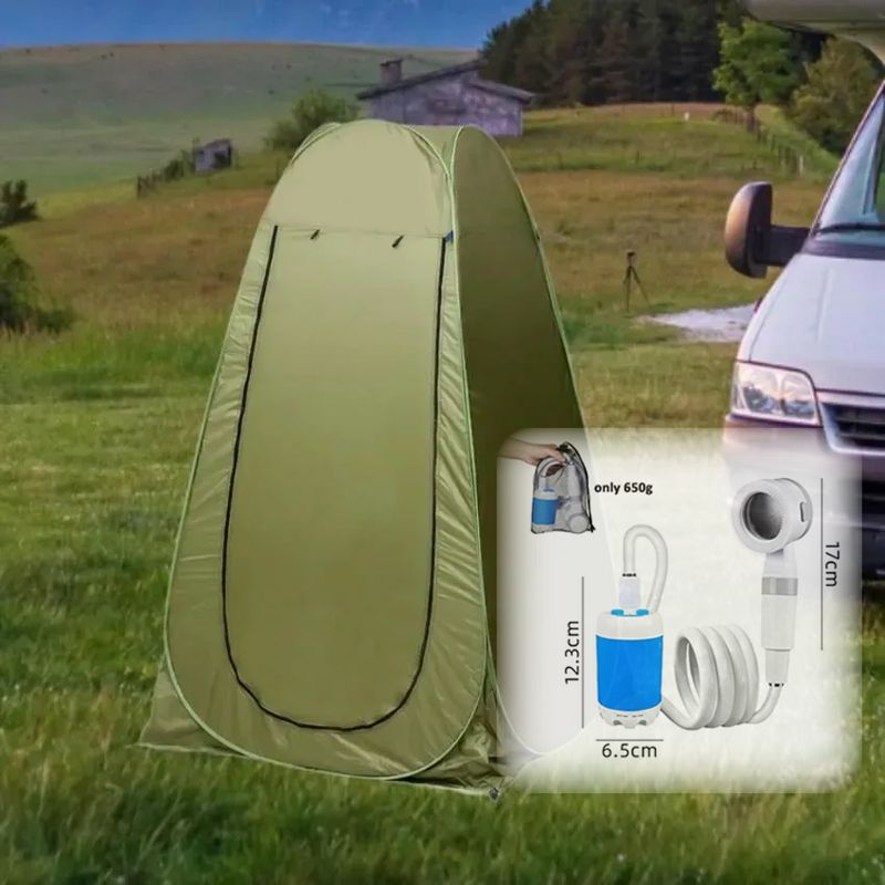 Outdoor bathing set.Portable tent + rechargeable shower.