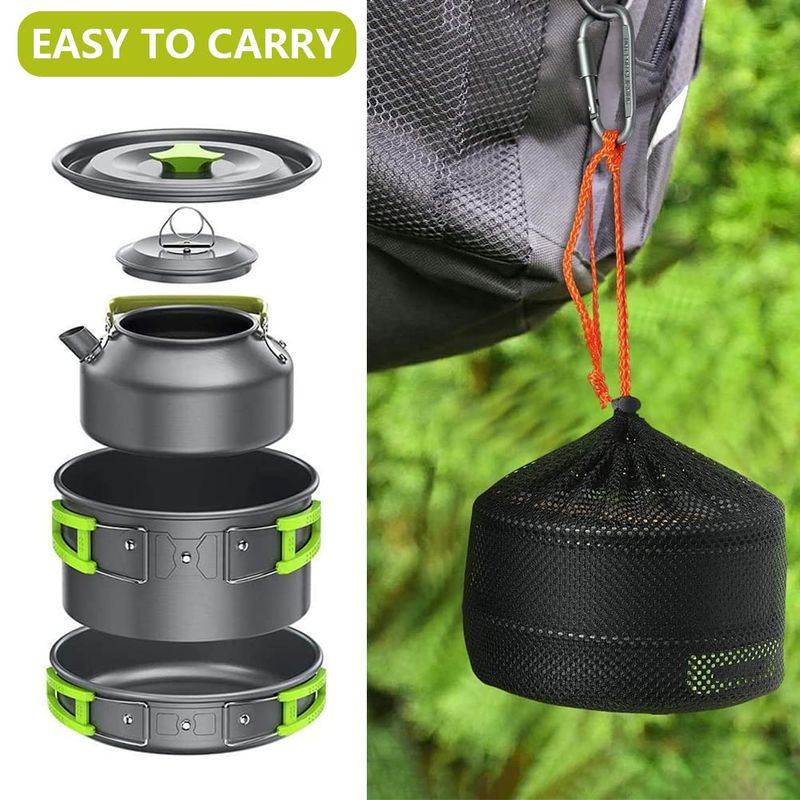 Picnic Cookware Kit, Outdoor Portable Alumina Pot Frying Pan Set
