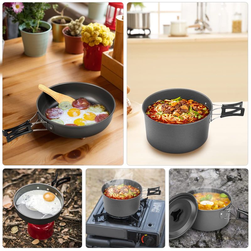 ◆ Versatile cooking: This outdoor cookware set includes pot, spoon, and bowl, etc. making it perfect for all your cooking needs, from frying to stewing and boiling.