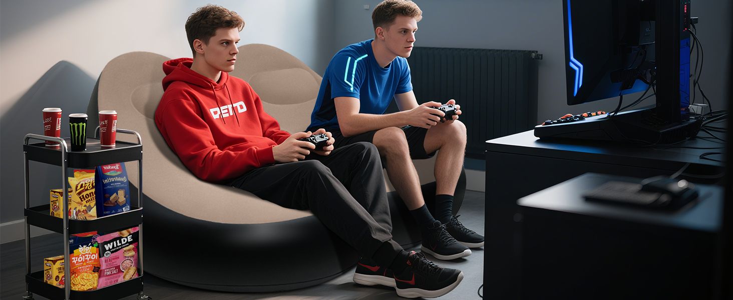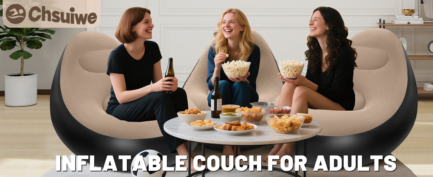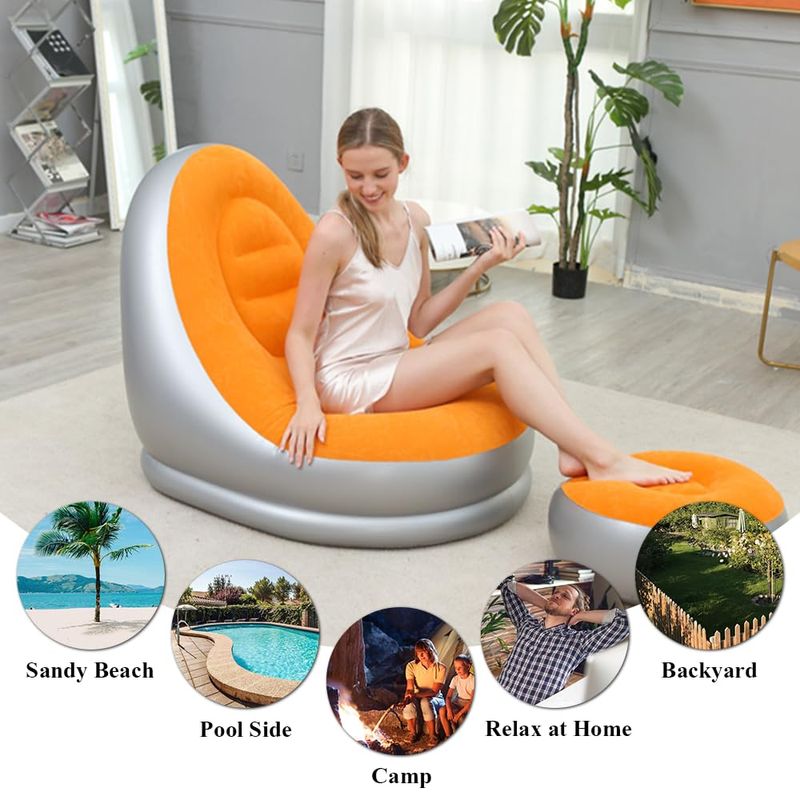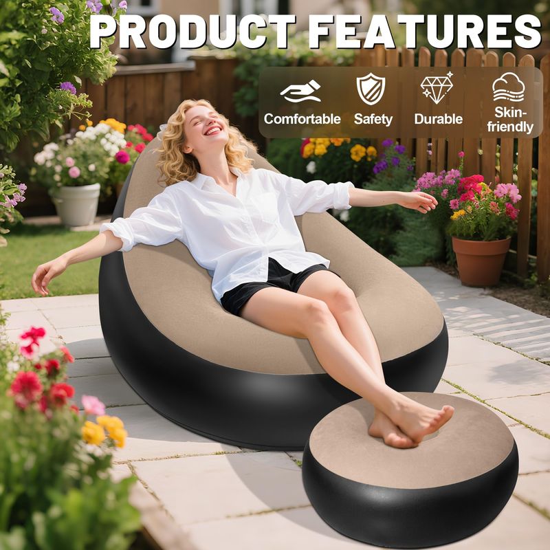 Portable Inflatable Sofa Ottoman Set with Electric Pump, Waterproof Flocked Inflatable Air Sofa