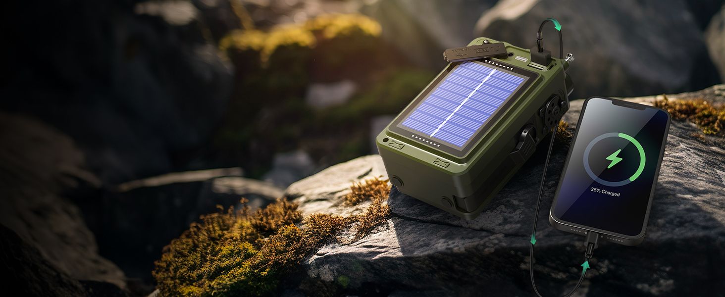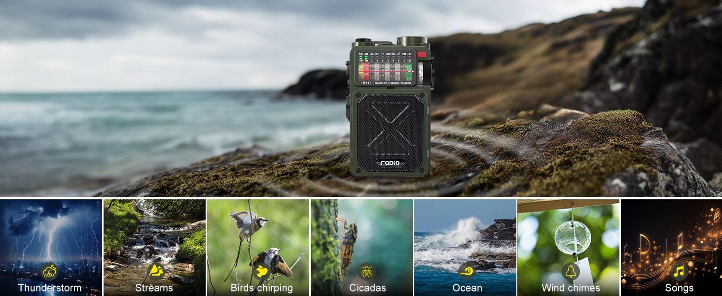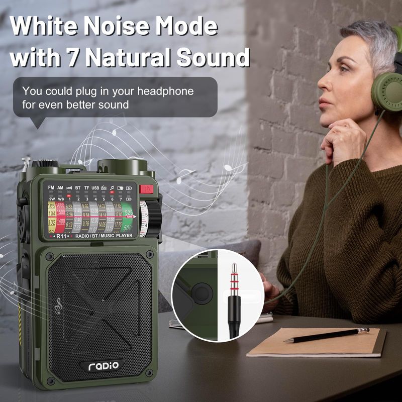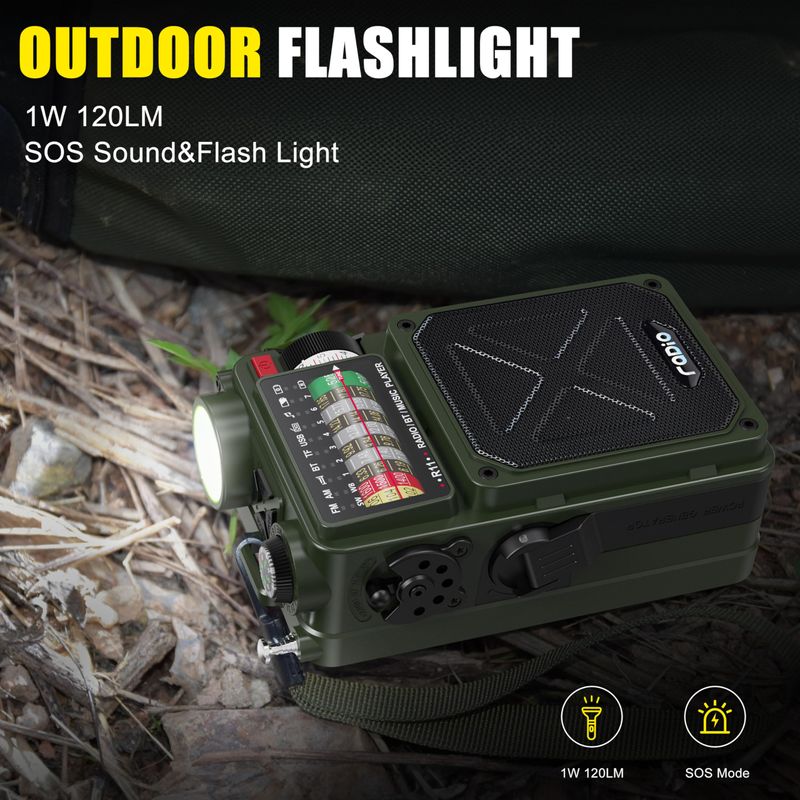 R11 Emergency Crank Radio, Support NOAA & SW & AM & FM, Solar & Hand Crank & USB Charging