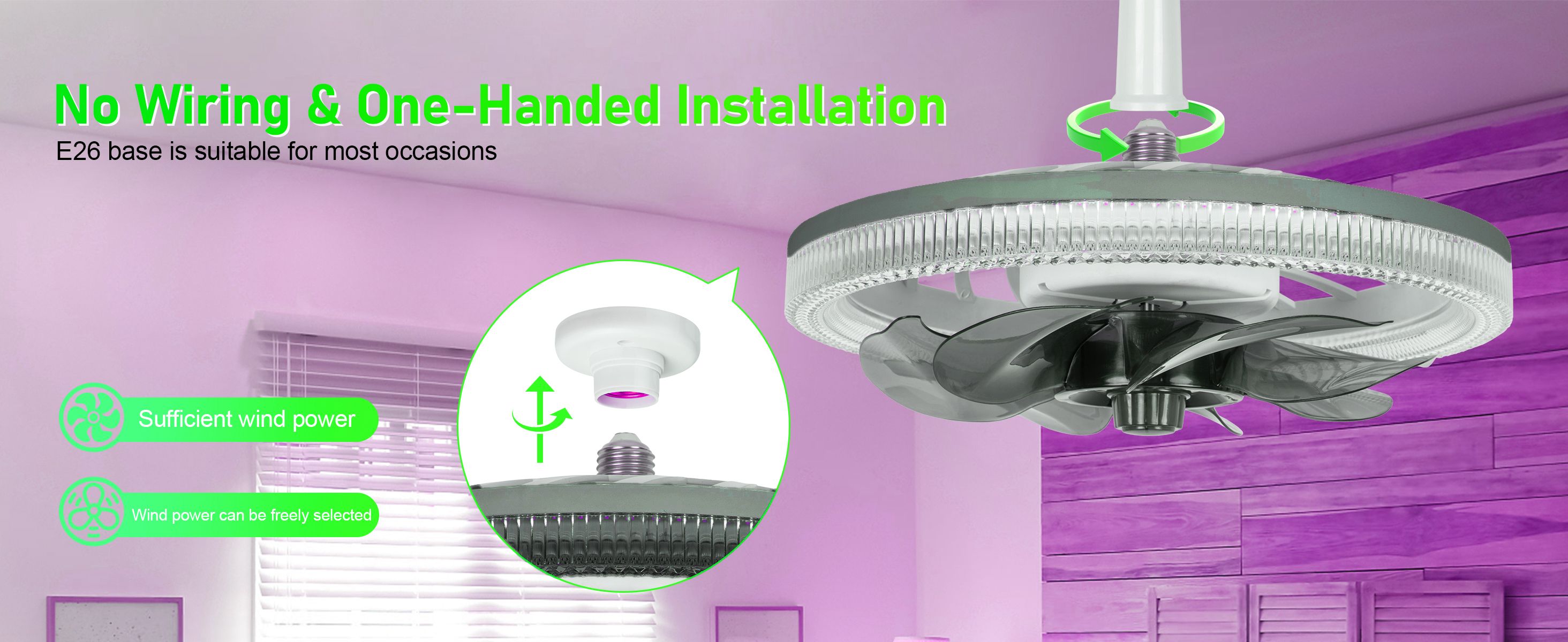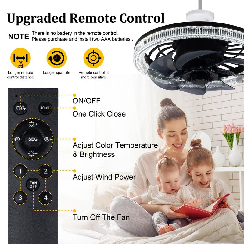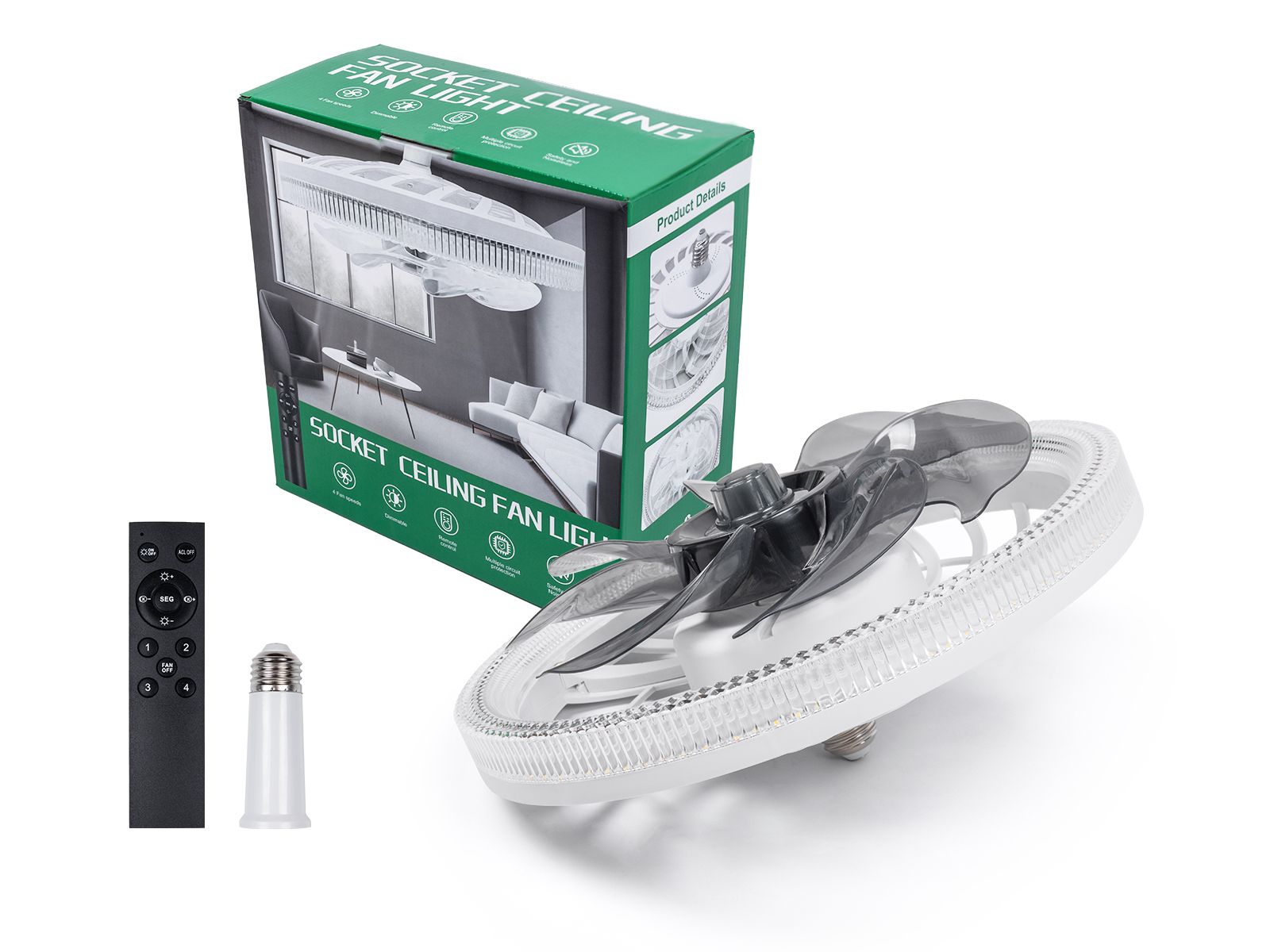 Socket Ceiling Fans with Lights, Dimmable Fan Light with Remote Control