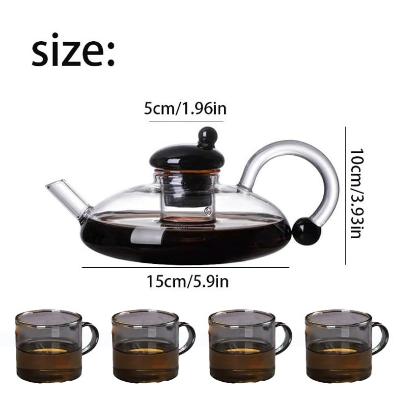 Ceramic Stove with Glass Teapot & 6pcs Teacups Stovetop Kettle Set for Loose Leaf Tea